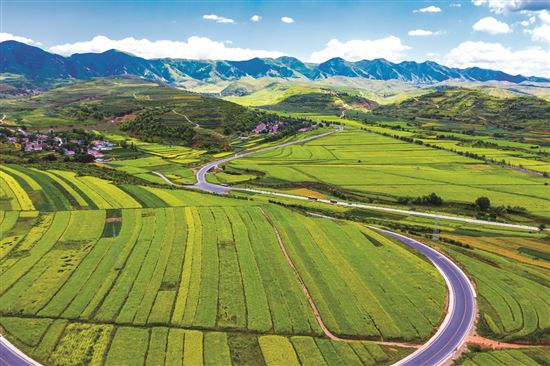 在這里,山水皆靈,無論是層巒疊嶂、云開日出,還是淳樸民俗、紅色傳奇,皆是亮眼的風(fēng)景;在這里,阡陌相通,無論是紅黑枸杞、五谷雜糧,還是葡萄美酒、蘋果梨花,正成搶手的生意。路網(wǎng)暢通處,熙熙攘攘,日益高效的城鄉(xiāng)人流物流,促進(jìn)了農(nóng)業(yè)產(chǎn)業(yè)轉(zhuǎn)型升級(jí),也讓美麗鄉(xiāng)村宜居宜業(yè)煥發(fā)生機(jī)……六盤山,曾經(jīng)記錄下歷史轉(zhuǎn)折的奇跡,而今正見證一個(gè)擺脫貧困的新時(shí)代。